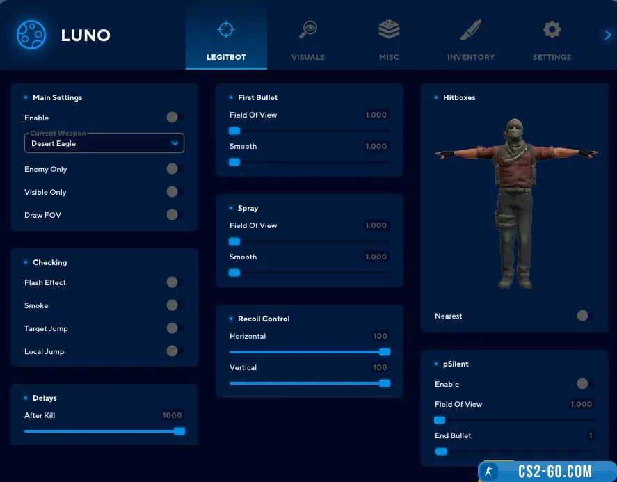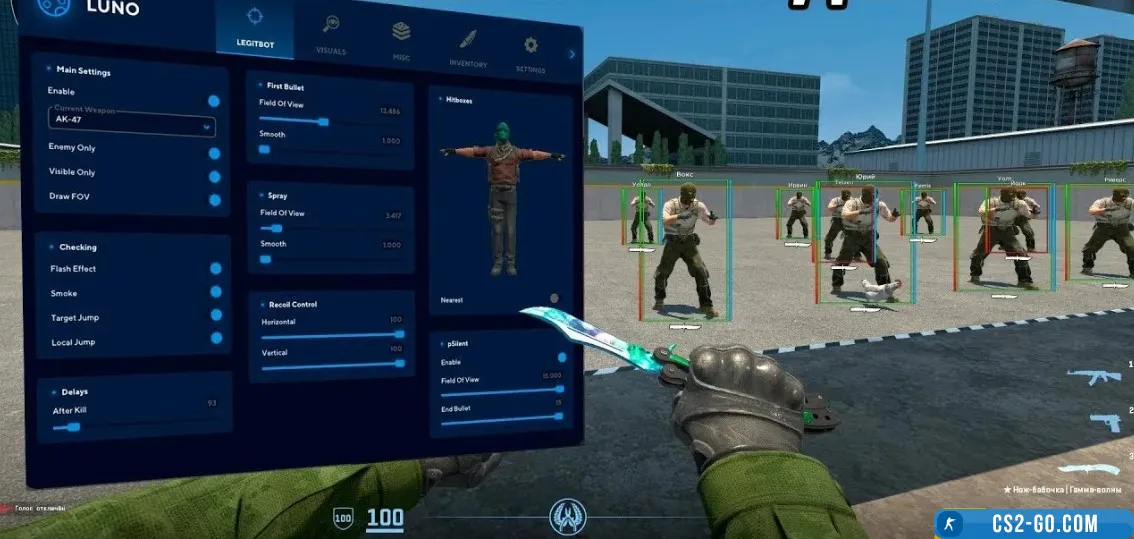 - In addition, the "Luno" cheat has built-in detection protection, which reduces the risk of account blocking and ensures safe use. Users can flexibly customize each function at their discretion, adapting the cheat to specific game situations. Luno is a reliable solution for those who want to reach a new level of skill and control the course of the game, getting the most out of each session in CS 2.