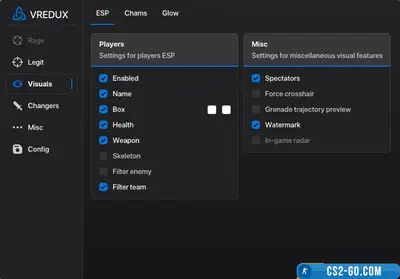 The main advantage of VRedux is its reliability and secrecy. The cheat is regularly updated to remain invisible to VAC and Overwatch. Flexible settings allow you to adapt it to any style of play, and stable operation guarantees the absence of lags and crashes. In addition, developers pay special attention to user safety, so the risk of detection is minimized.