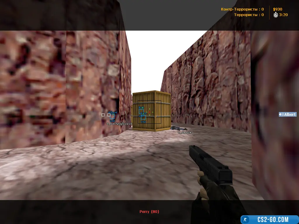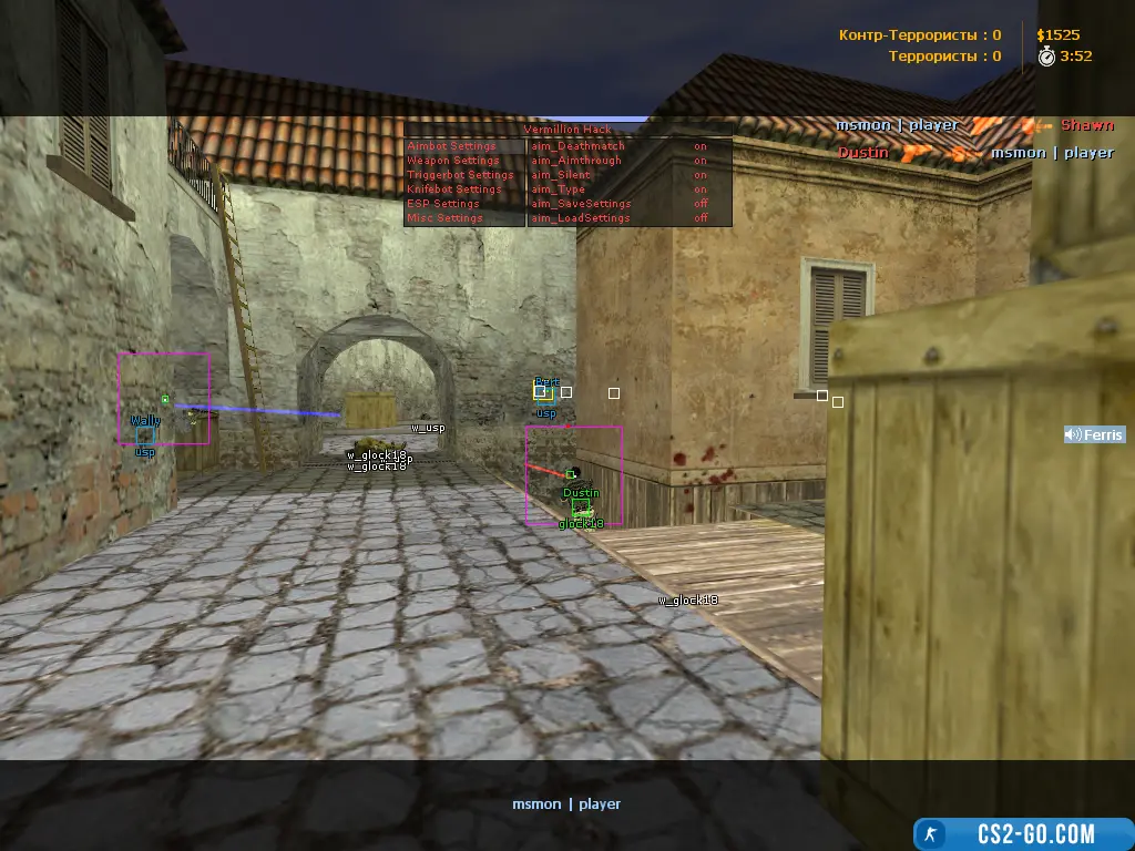 ESP cheat - a cleverly designed cheat that detects player sounds across the map and highlights them with bright colored boxes. This cheat is not blocked by the WHBlocker server module, which makes it extremely popular compared to regular WH.