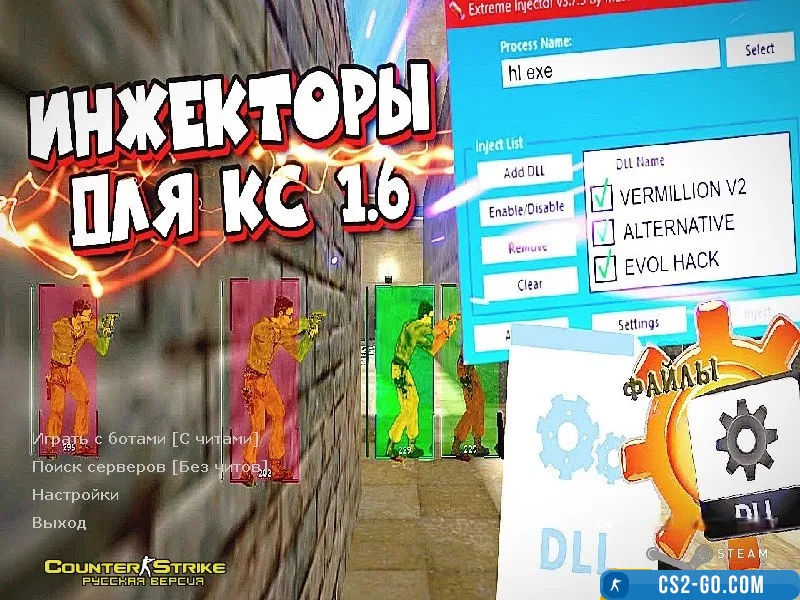 - CS 1.6 with injector is a unique build that provides players not only with the classic gaming experience but also the ability to use additional features through script and cheat injection. This version is designed for those looking to diversify gameplay or test new possibilities in Counter-Strike 1.6.