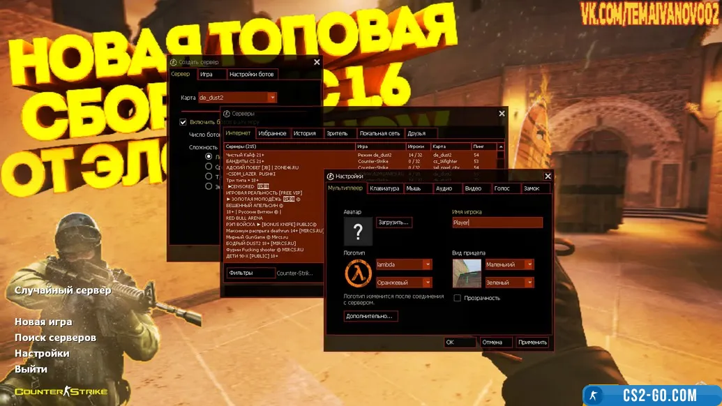 - The build includes updated weapon and character models, custom menu and HUD design, reworked sounds, and most importantly — Elson’s custom configuration settings optimized for maximum shooting efficiency. Shots sound clear, movements are smooth, recoil is controlled. Everything is made so that the player feels confidence and control on any map. In addition, the build preserves the spirit of classic CS 1.6, making it enjoyable both in terms of gameplay and nostalgia.