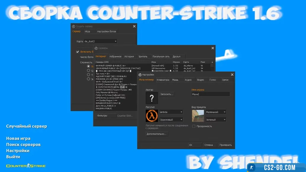 - CS 1.6 by SHENDEL is a high-quality build of the legendary shooter, created with the participation of the well-known YouTuber and streamer SHENDEL. The build is perfect for both beginners and experienced players who value stability, convenience, and visual design of the client. You can download CS 1.6 by SHENDEL for free and without registration — installation will take just a couple of minutes, and after that you will immediately enter the game without any settings. The build is completely safe, without viruses and ads, and works great on any PC.