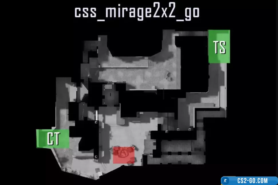 - The map "css_mirage2x2_go" is great for training and quick matches, where each player can test their skills and improve interaction with a teammate. Unlike larger maps, in this version players rarely lose sight of each other, which creates constant tension. For those looking for fast and intense games, it will be an excellent choice, allowing them to enjoy the classic Mirage map in a new format with maximum dynamism.