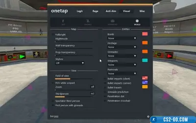 - One of the main features of OneTap is a high—precision aimbot, which allows you to aim flawlessly at opponents. This tool is ideal for those who want to always hit the target, regardless of the complexity of the situation. In addition, the cheat includes the BX function (see through walls), which provides full control over the map and allows you to predict the actions of your opponents.